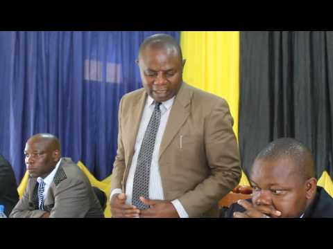 Mwenyekiti wa halmashauri ya Wilaya ya Mufindi Mh. Festo Mgina akifunga kikao cha baraza maalum la bajeti kwa kusisitiza ukusanyaji wa mapato.